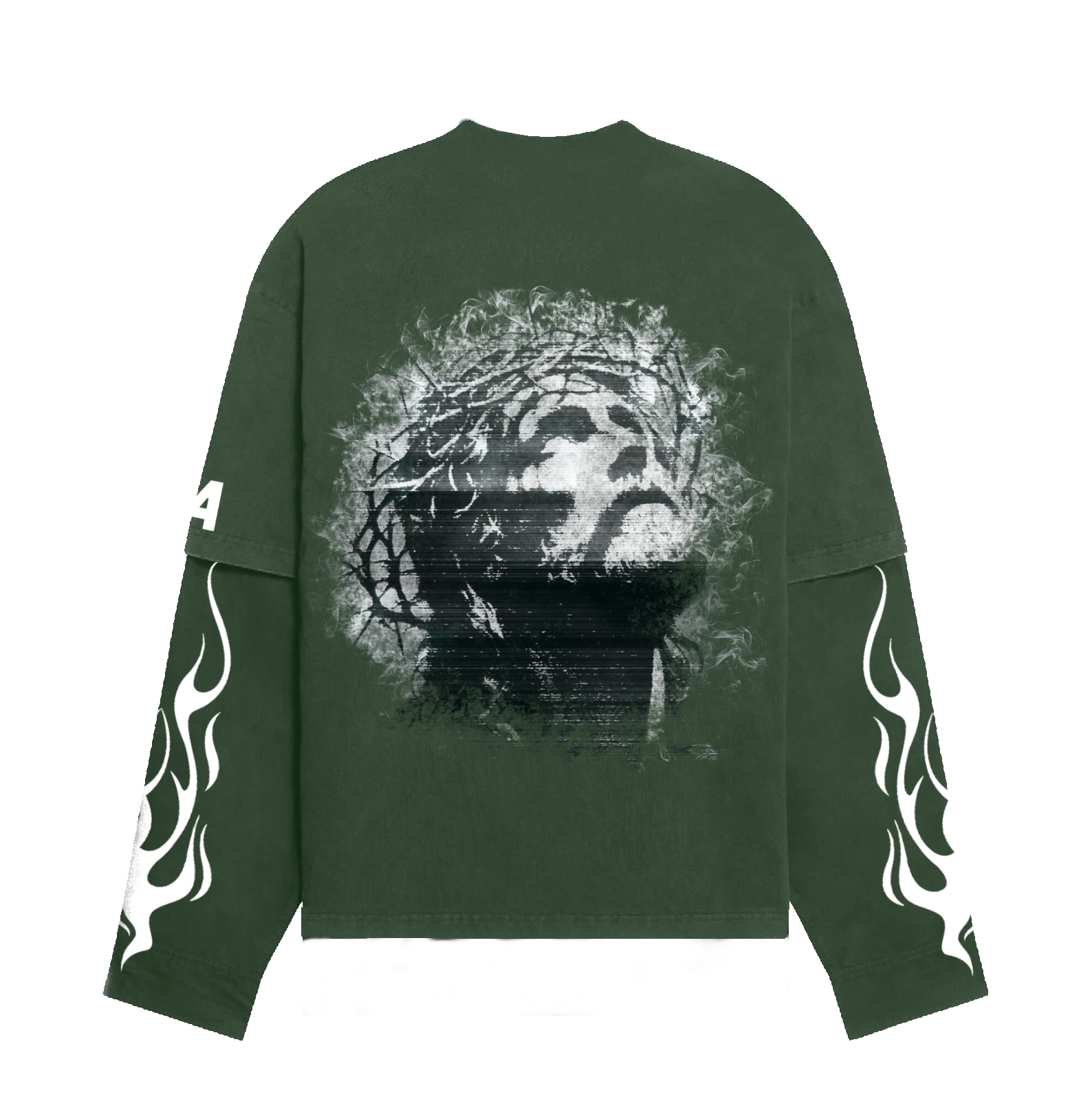 -IGNITE YOUR STYLE WITH OUR FLAMES OF FIRE DOUBLE LAYERED TEE.
